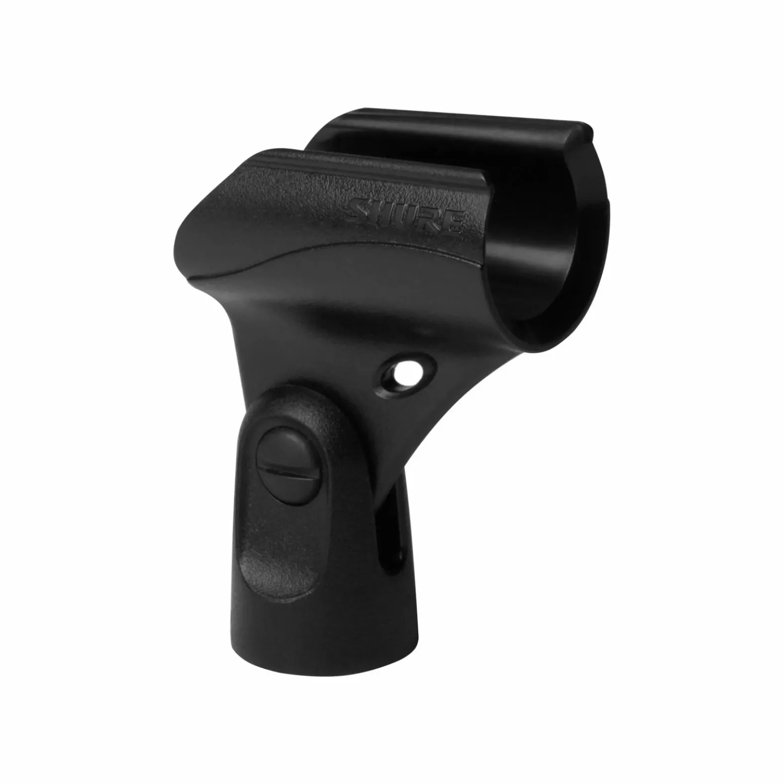 Mount for Shure models with a shaft diameter of ca. 3/4-inch / 25 mm – 30 mm like the: PGA48, PGA57, PGA58, PGA81, SM48, SM57, SM58, SM94, SM137, 565, 545, Beta 57, Beta 58 and KSM9 to standard microphone stands.