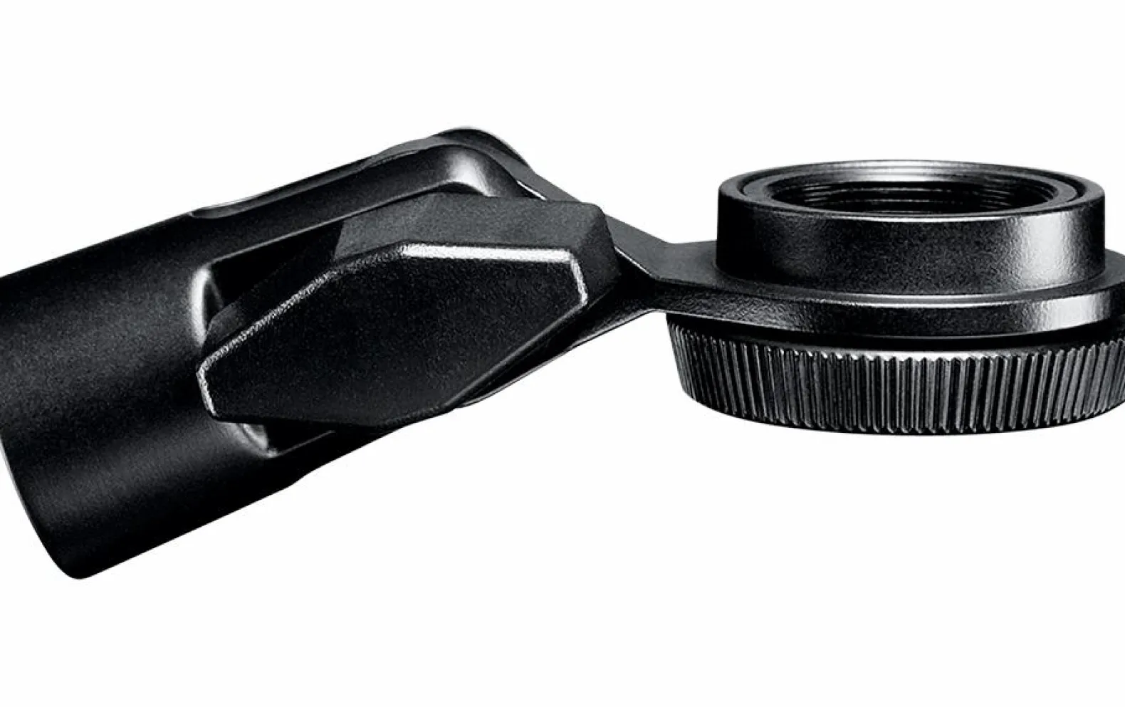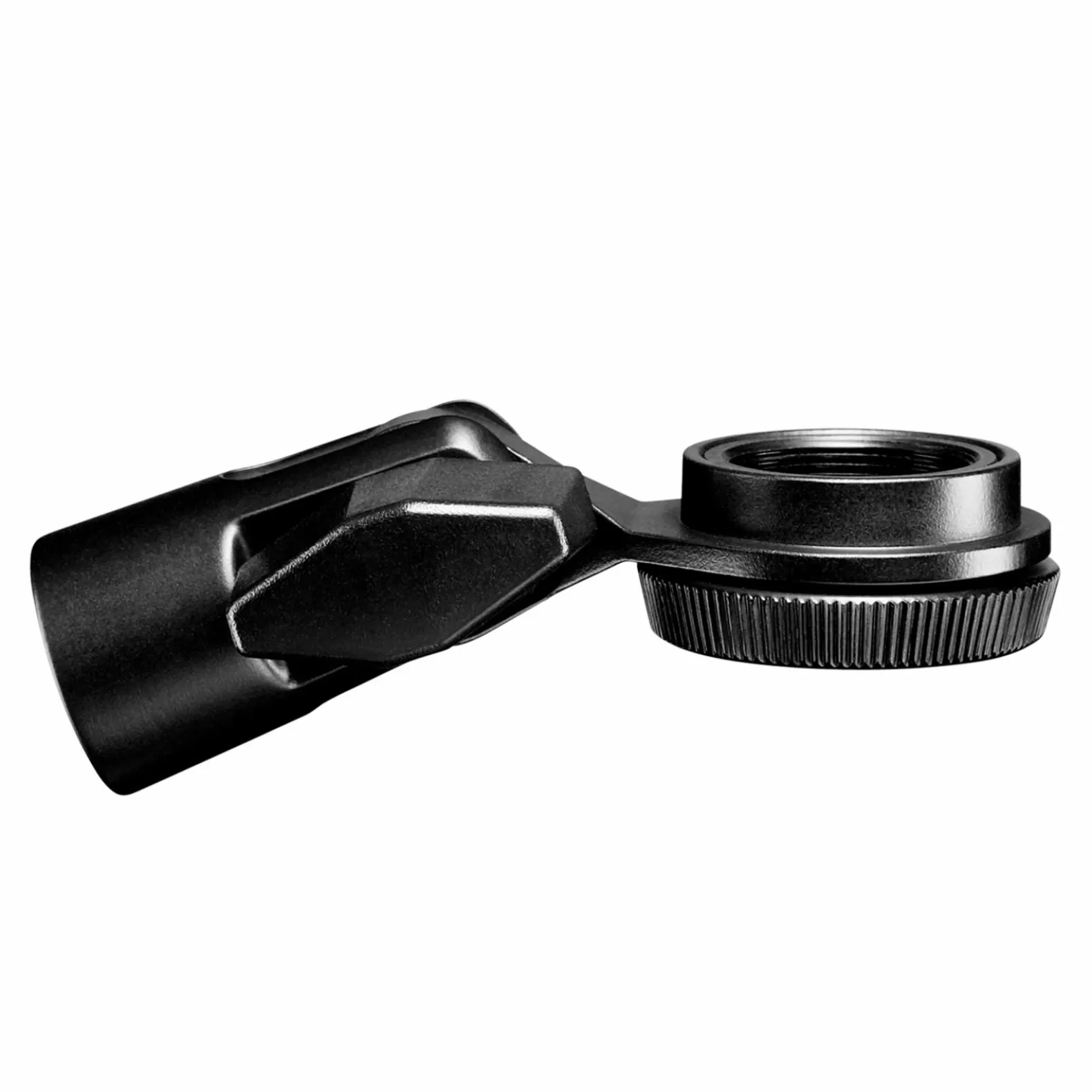 Swivel mount secures side-address, large diaphragm microphones to standard microphone stands.