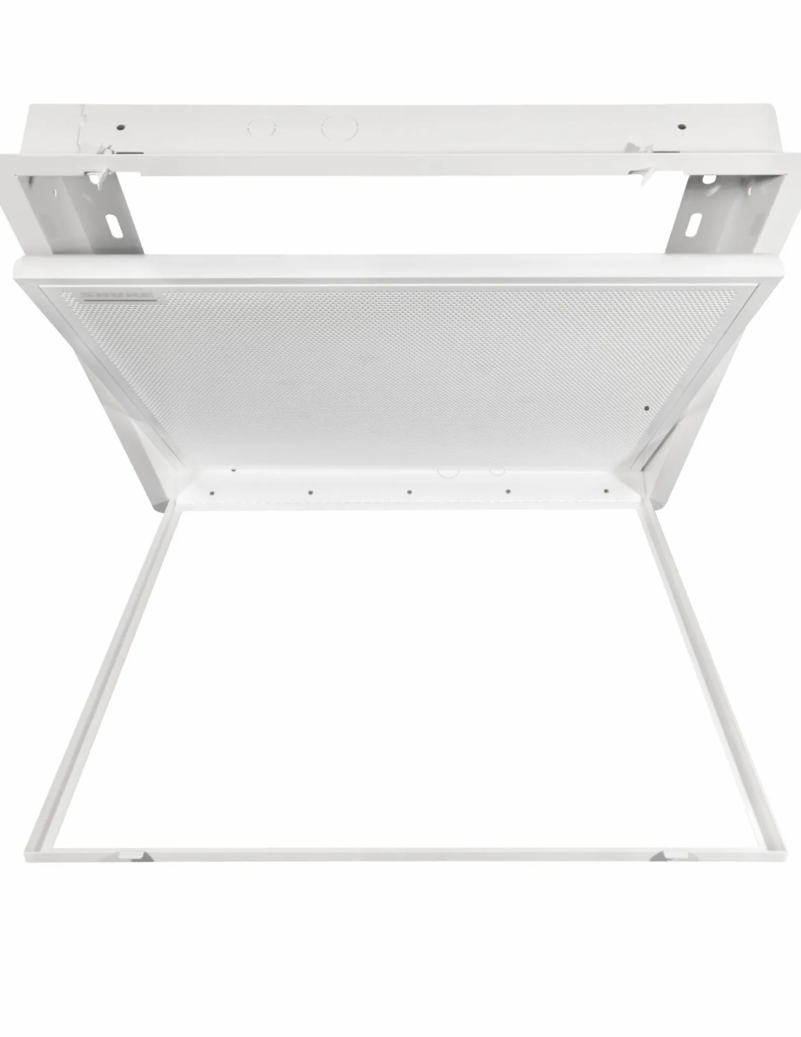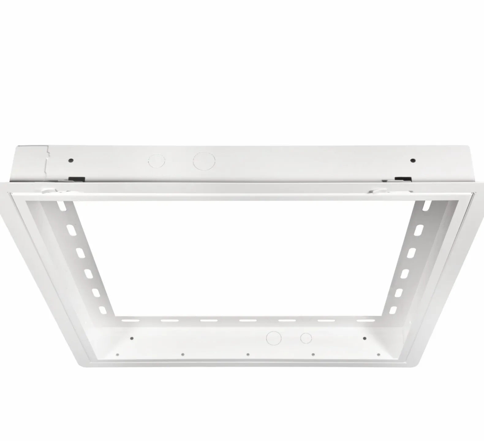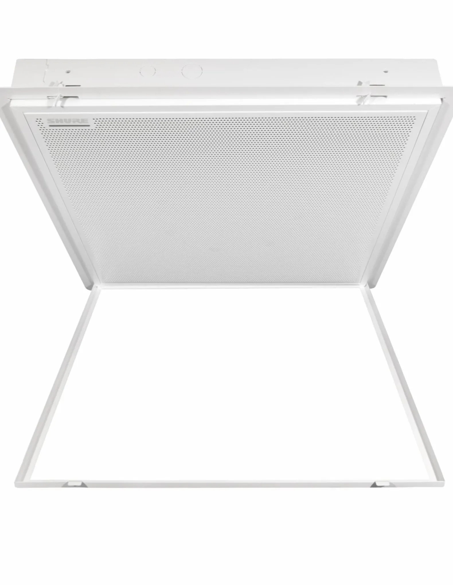 The A910 Hard Ceiling Mount allows the MXA902, MXA910, or MXA920-S Ceiling Arrays to be mounted flush in a drywall or hard ceiling, providing a more finished appearance. The mount is paintable to match the ceiling color, and can be pre-installed in the ceiling and the microphone installed later. The A910-HCM can be secured to framing along its sides, suspended, and/or attached to a Unistrut® metal framing system above the ceiling. Knockouts are provided for connections to electrical conduit, such as when used with the A910-JB Junction Box accessory. The mount also accommodates the FyreWrap® cover included with the MXA910 for UL 2043 Plenum Rating. The A910-HCM accommodates both the 24 inch and 60 centimeter sizes of MXA902, MXA910, and MXA920-S microphones.