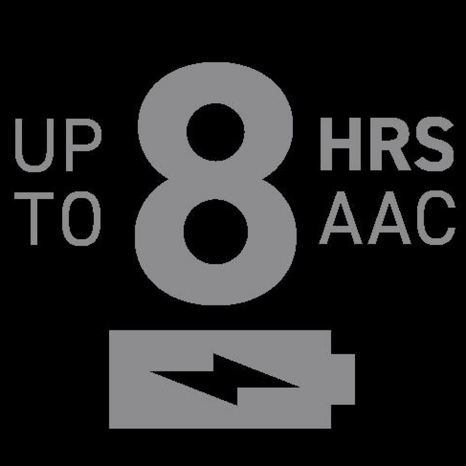 - Up to 8 hours battery life. Uninterrupted audio wherever you are – on the train, in the gym, or at home. Included carrying case provides three additional charges for a total of up to 32 hours battery life on-the-go.