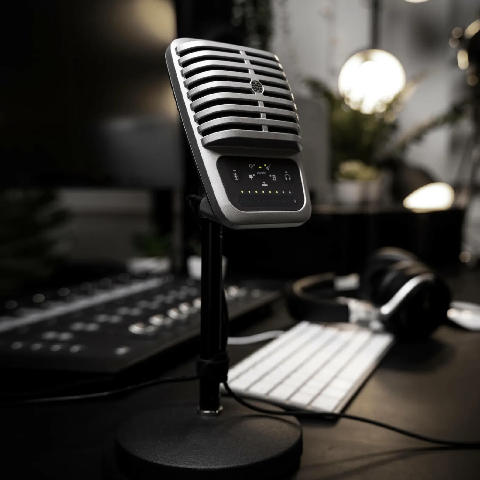 With both iOS and USB connectivity, the MV51 Large-diaphragm Condenser Microphone offers content creators professional-quality audio, in the studio and on the go. Plug it in and get to work right away, take advantage of five onboard DSP presets to quickly dial in the right sound for your project, or dive even deeper with the free ShurePlus™ MOTIV™ iOS app for enhanced recording, editing, and sharing. With its iconic design, rugged durability, and iOS/USB versatility, the MV51 lets you capture your sound, your way, anywhere.