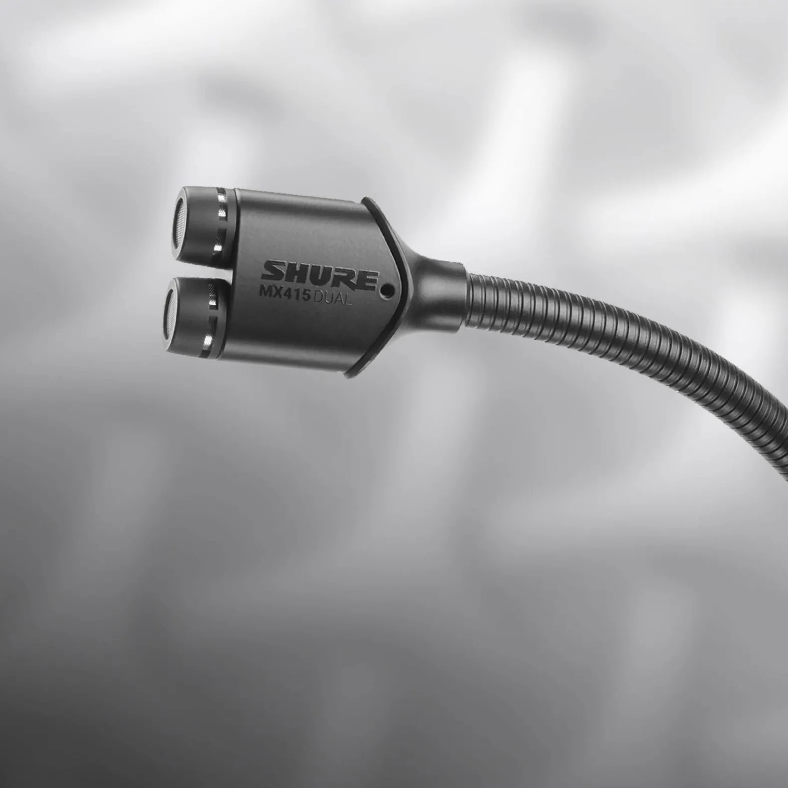 When important issues are on the line, the MX415DUAL/C captures it all – twice.The microphone features two electret condenser cartridges mounted in a single low-profile housing and two preamp-equipped outputs providing redundant audio for critical, multi-feed live sound and professional broadcast applications. The MXA415D has a 15″ overall length and equipped with a flexible top gooseneck section for optimal placement.