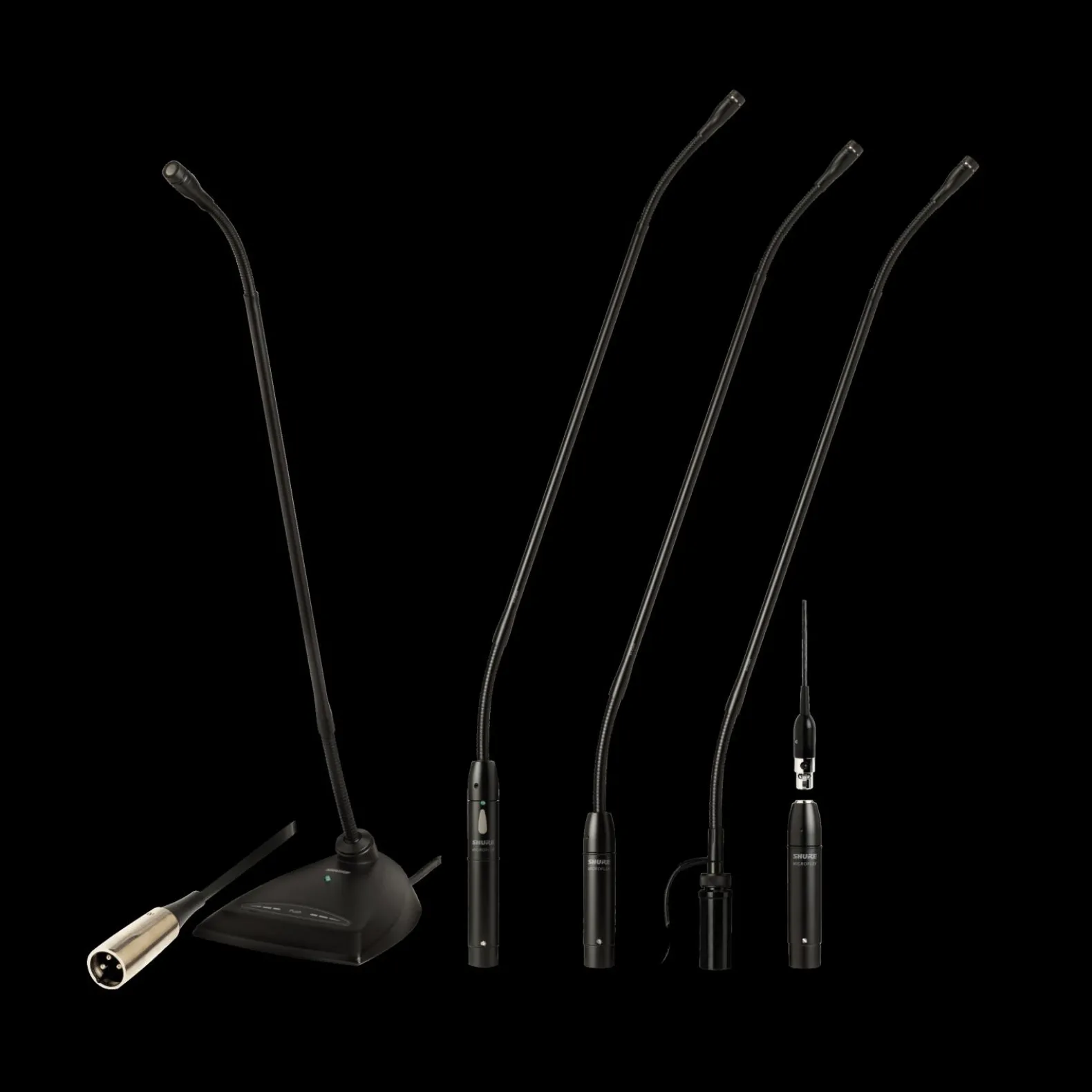 | Size | Condenser Microphone, Cardioid, 45.7 cm / 18 Inch Gooseneck, Bottom Cable Exit, Preamp Included, Black, 3-pin XLR Connector, Condenser Microphone, Cardioid, 45.7 cm / 18 Inch Gooseneck, Bottom Cable Exit, Preamp Included, Black, 3-pin XLR Connector, Programmable Mute Switch, Condenser Microphone, Cardioid, 45.7 cm / 18 Inch Gooseneck, Green LED at the Bottom, Bottom Cable Exit, Preamp Included, Black, 3-pin XLR Connector, Mute Switch, Condenser Microphone, No Capsule Included, 45.7 cm / 18 Inch Gooseneck, Bottom Cable Exit, Preamp Included, Black, 3-pin XLR Connector, Condenser Microphone, No Capsule Included, 45.7 cm / 18 Inch Gooseneck, Bottom Cable Exit, Preamp Included, Black, 3-pin XLR Connector, Programmable Mute Switch, Condenser Microphone, No Capsule Included, 45.7 cm / 18 Inch Gooseneck, Green LED at the Bottom, Bottom Cable Exit, Preamp Included, Black, 3-pin XLR Connector, Mute Switch, Condenser Microphone, Supercardioid, 45.7 cm / 18 Inch Gooseneck, Bottom Cable Exit, Preamp Included, Black, 3-pin XLR Connector, Condenser Microphone, Supercardioid, 45.7 cm / 18 Inch Gooseneck, Green LED at the Bottom, Bottom Cable Exit, Preamp Included, Black, 3-pin XLR Connector, Programmable Mute Switch |