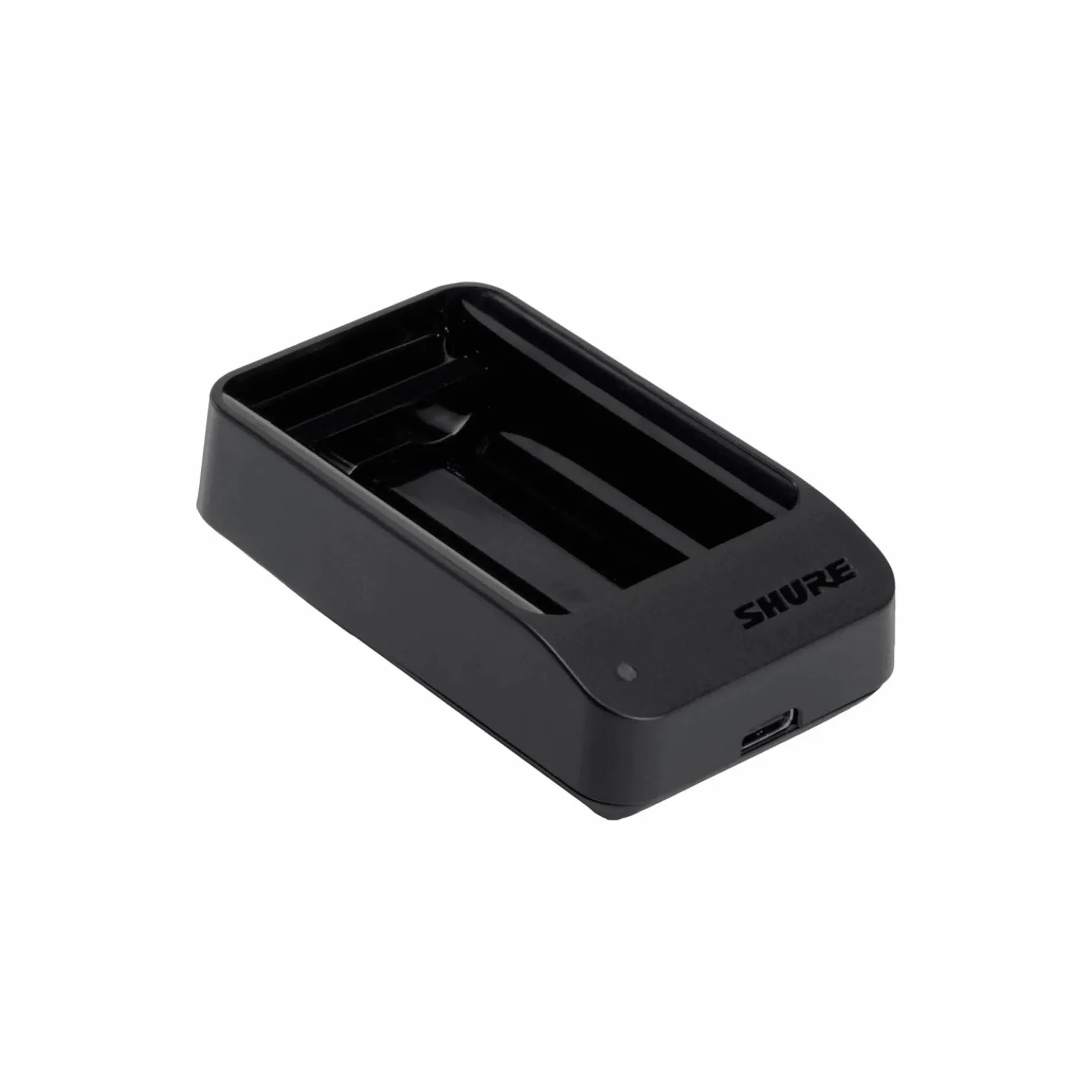 USB single battery charger can be powered from A/C power sources and USB ports to charge one Shure SB903 Lithium-Ion Rechargeable Battery for use with SLX-D Digital Wireless Transmitters.