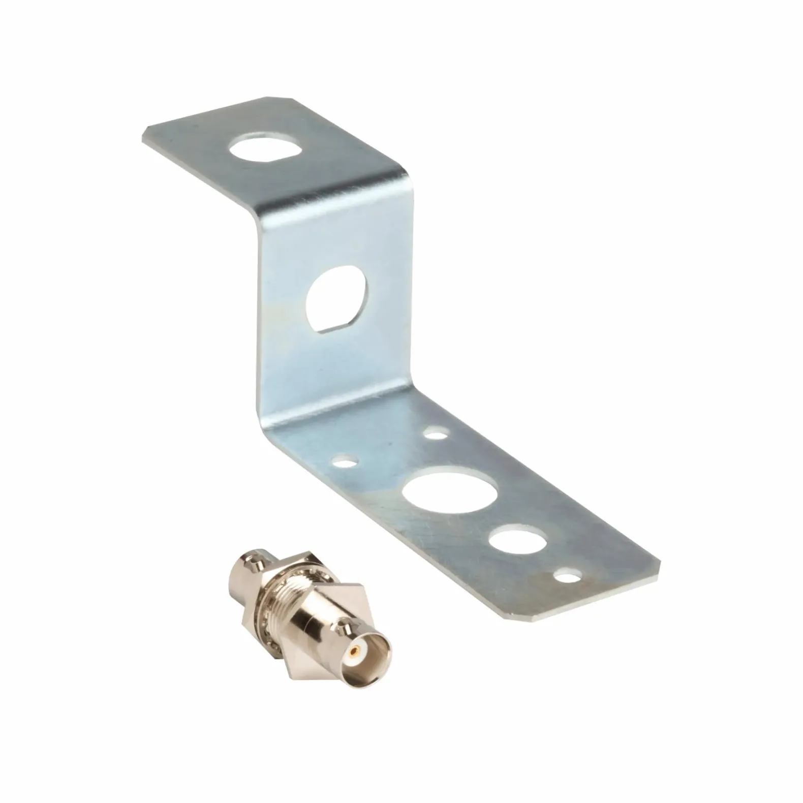 The UA505 Remote Antenna Mounting Bracket Kit lets you mount a 1/2 wave receiver antenna away from the receiver or the equipment rack. This kit includes one mounting bracket, a bulkhead adapter, and bulkhead adapter nut.