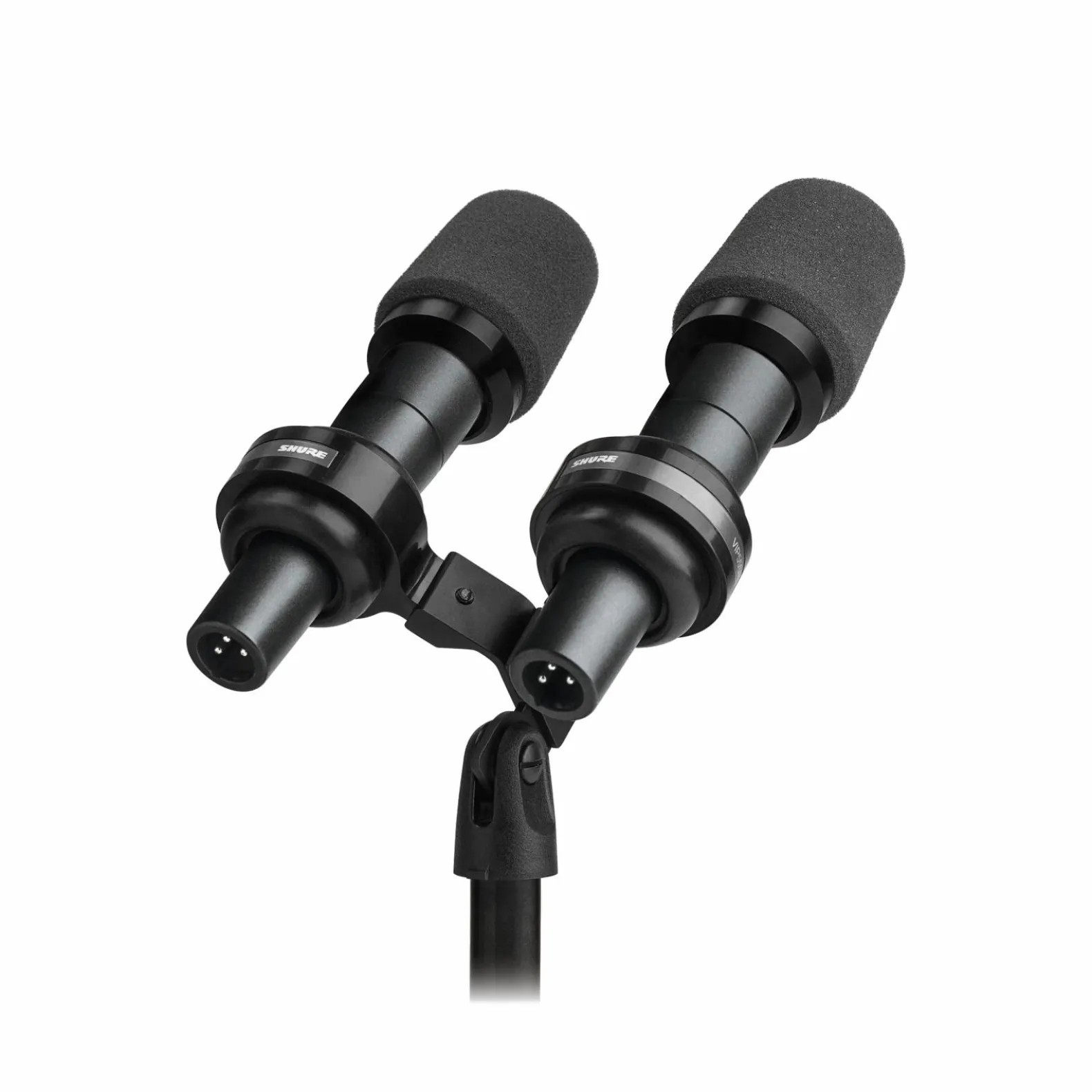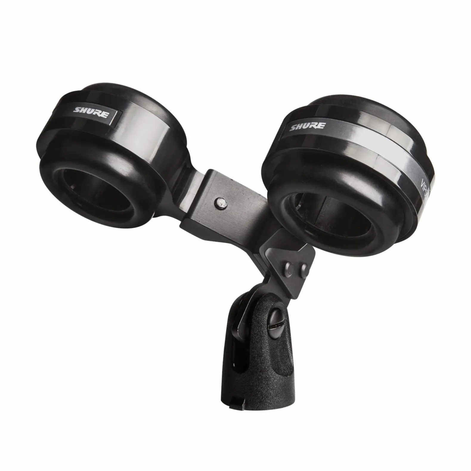 The VIP55SM Dual Mount Kit holds two microphones, typically two SM57 mics, side by side.