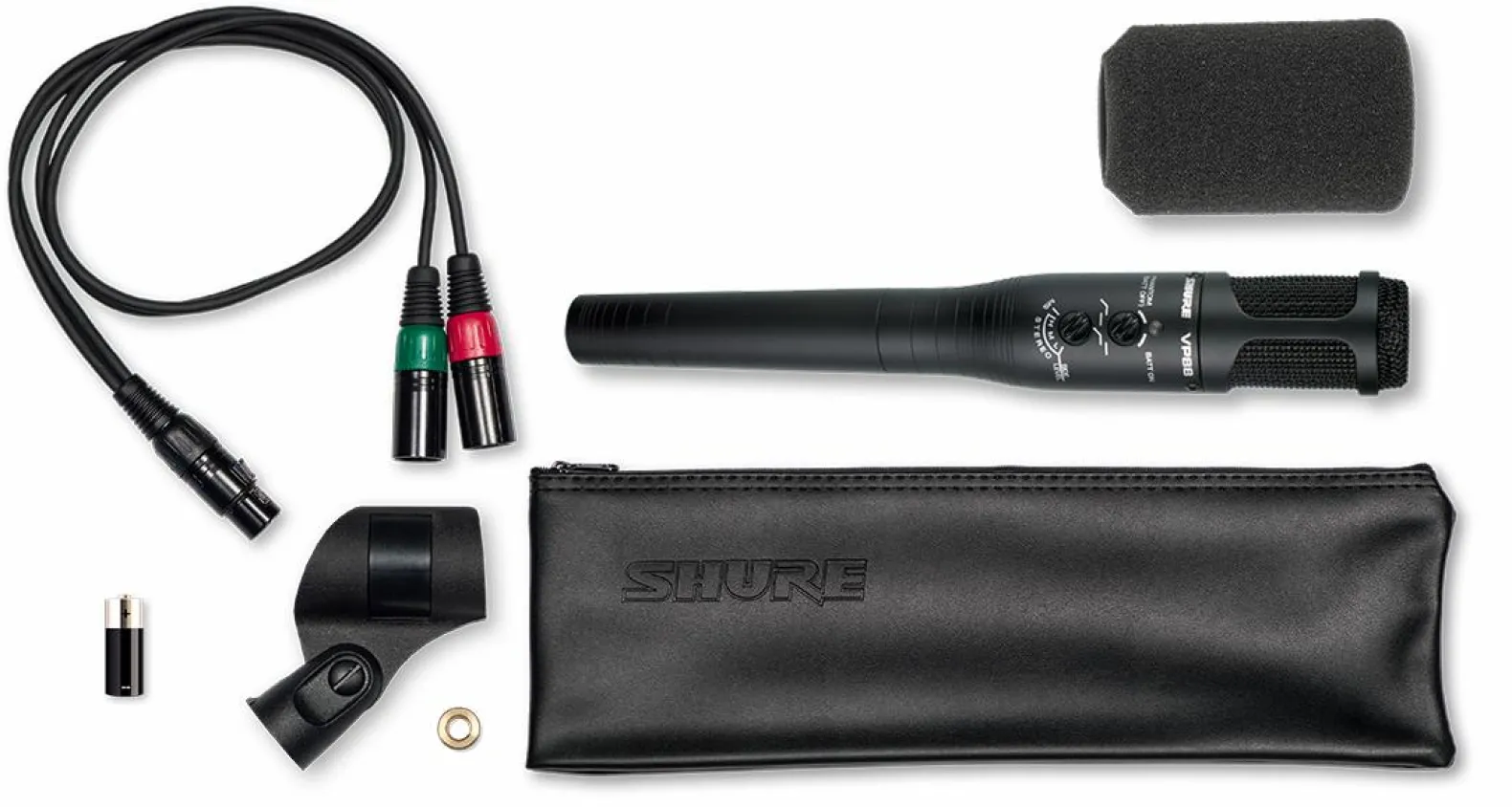 The Shure Model VP88 is a single-point, stereo condenser microphone for use in professional studio recording, field production, electronic news gathering (ENG), and studio broadcasting applications. It combines two condenser cartridges in a single housing to create a stereo audio image of the sound source. It is unique in its ability to capture the realism of a live event and yet withstand rigorous field production environments.