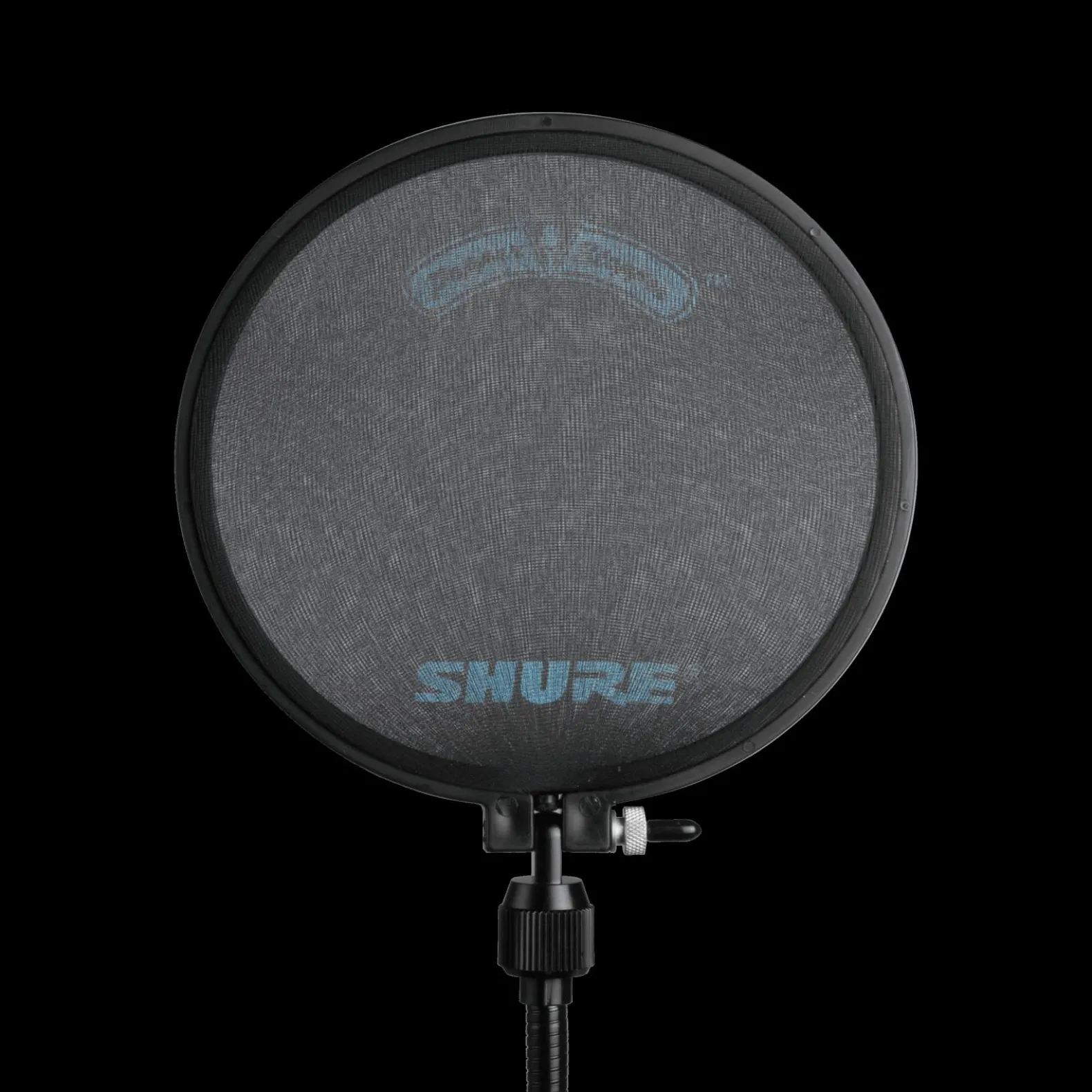Windscreen attenuates unwanted breath noise and plosives and can be clamped to most stands.