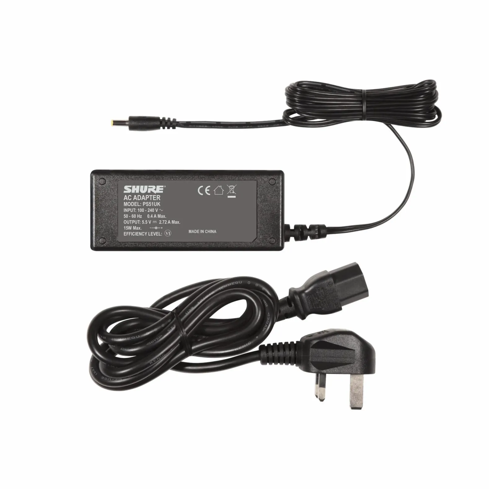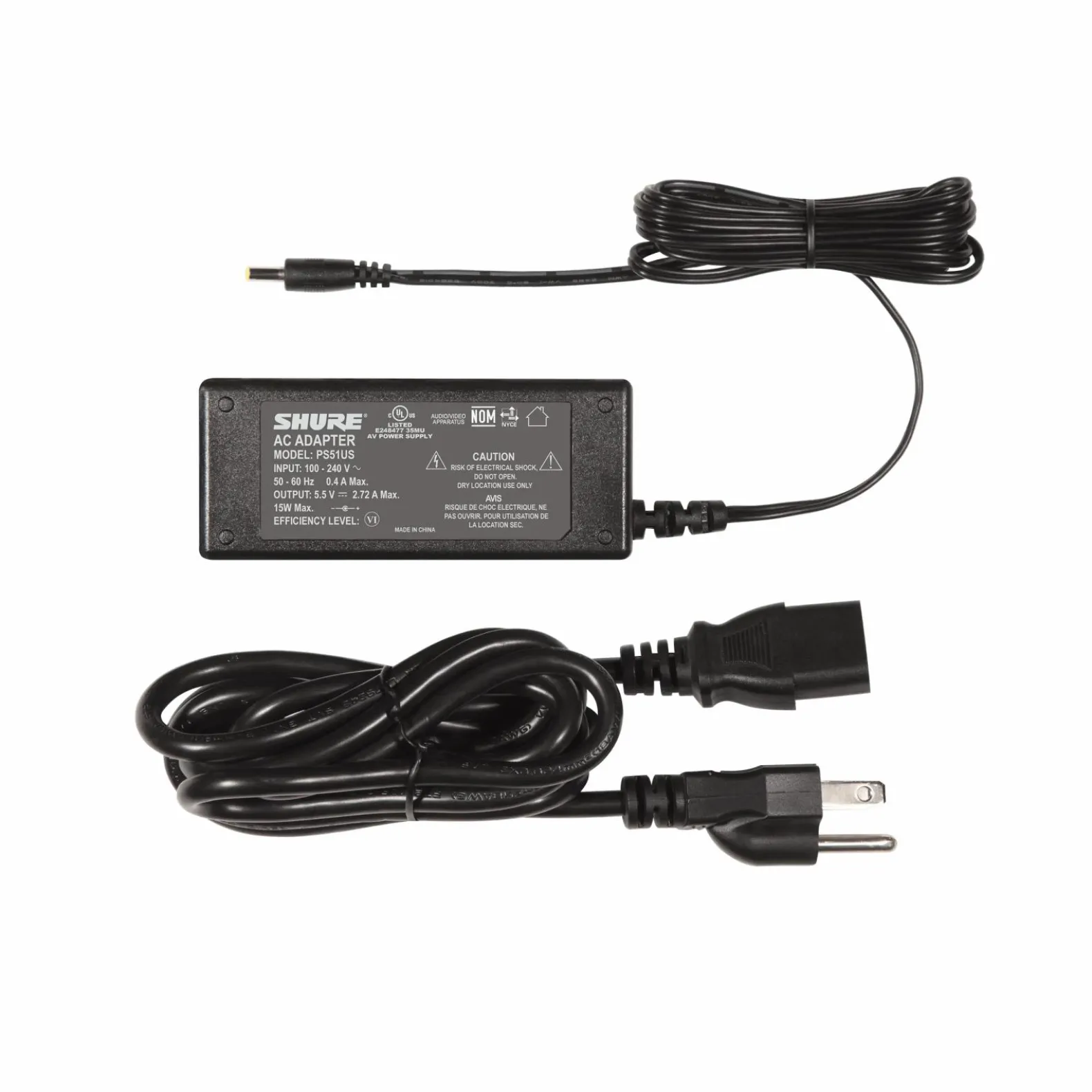 | Size | 5.5V DC in-line power supply for Shure charging modules, US Connector |