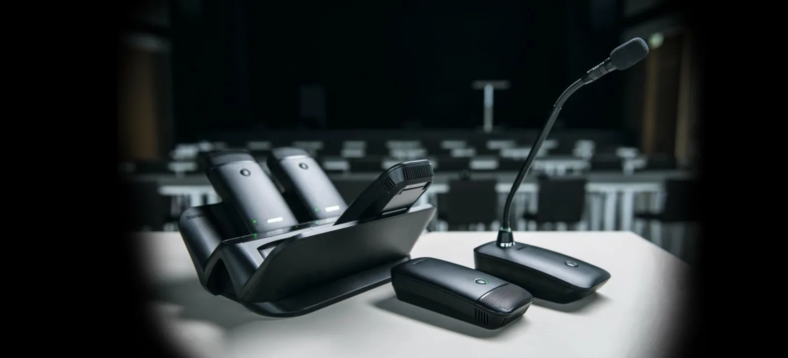 4-bay networked docking station charges up to 4 ULXD6 or ULXD8 transmitters equipped with the SB900B Rechargeable Battery.