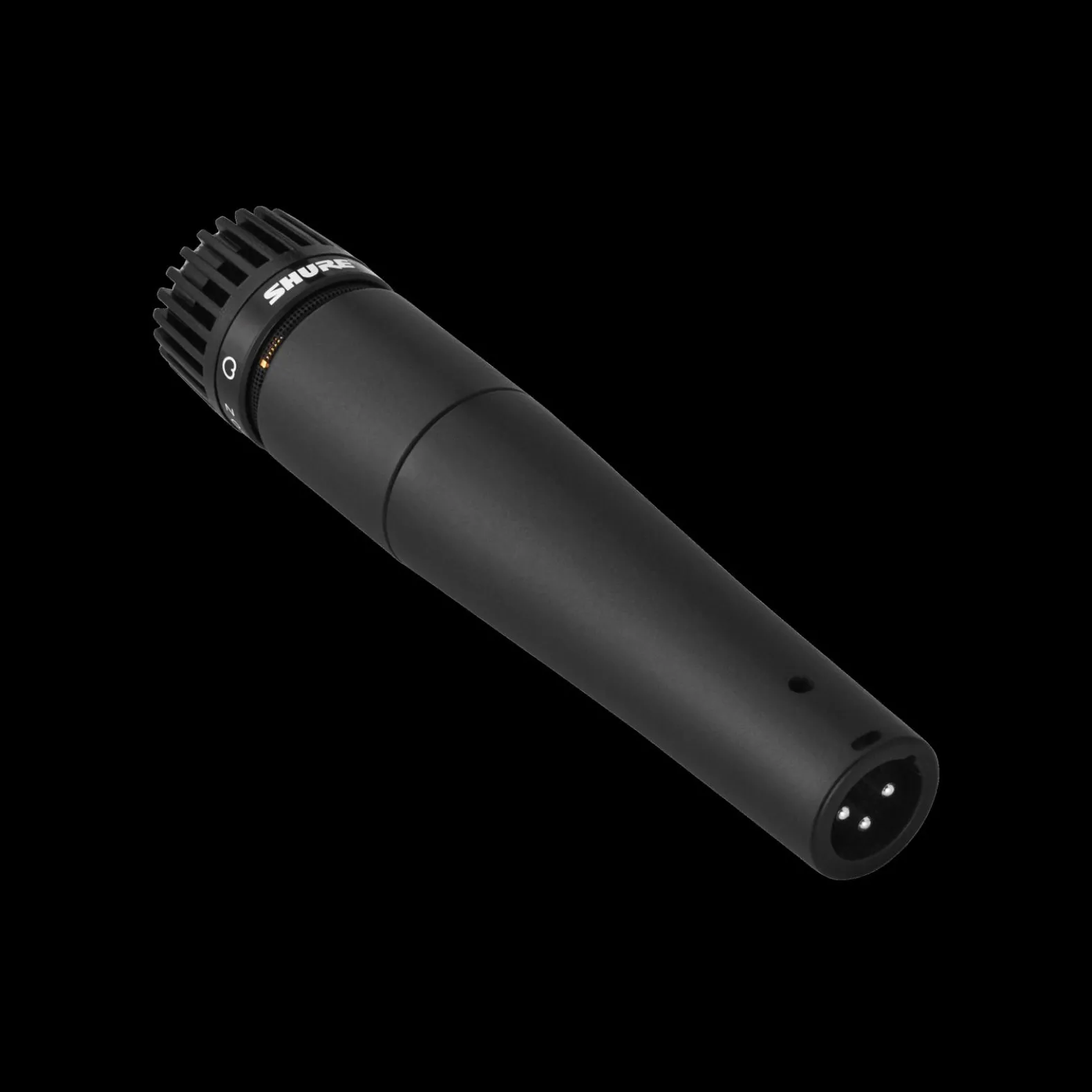 It’s the most popular choice for a professional musician who wants to mic up their amplified or acoustic instrument such as a guitar amp or bass amp, saxophone, trumpet or drums. It is used on stages and in studios around the world.